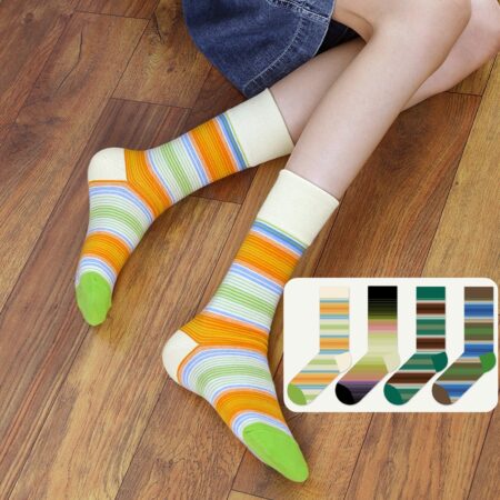 w0008 個性光波彩色條紋中筒襪.襪子