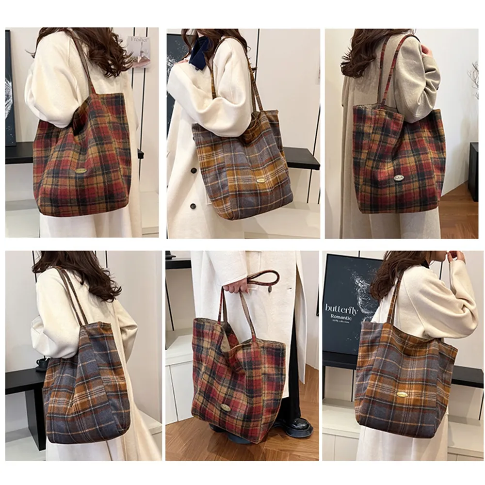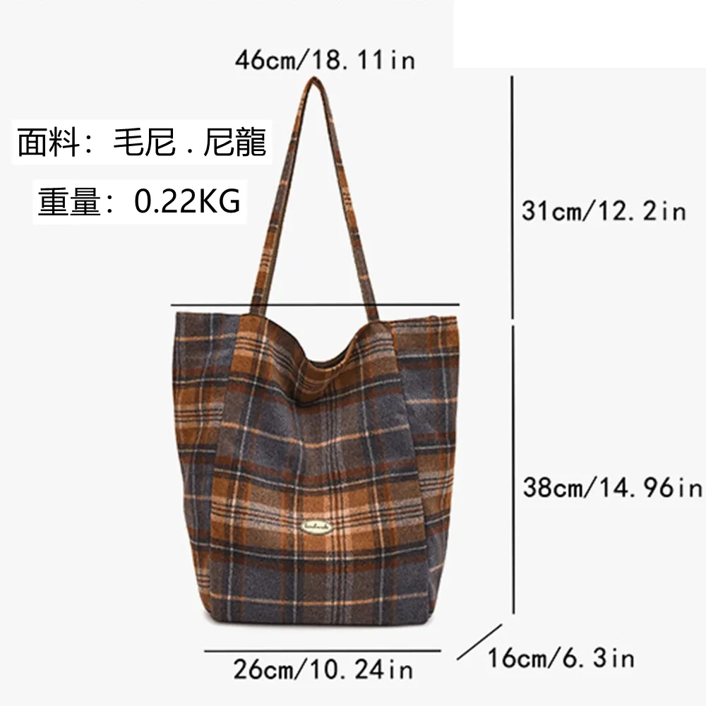 45006 韓版格子托特包.學院風休閒大容量肩背包
