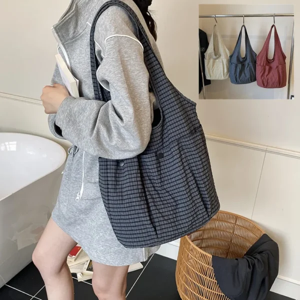 49101 韓系復古格子帆布包.托特包.肩背包 49101 韓系復古格子帆布包.托特包.肩背包