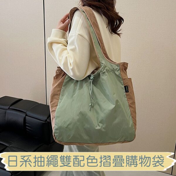 C098 日系抽繩雙配色摺疊購物袋|多色可選|環保購物袋|輕便手提買菜袋