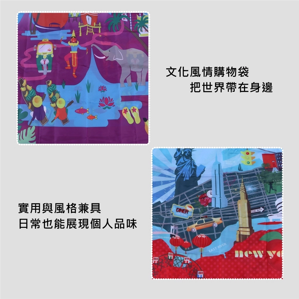 將世界各地的風情圖案融入設計,把旅行記憶化為日常配件。輕巧可摺疊,收納不占空間,隨手放進包中,外出購物或臨時採買都能派上用場。兼具實用性與風格感,讓平凡日常多一點異國氣息。