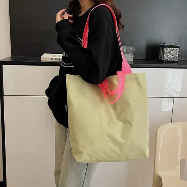 這款大容量購物袋以清新日系風格設計,外型簡約耐看,適合購物、旅行、野餐或日常外出使用。採用高密度尼龍布製作,質地輕盈耐用,並具防潑水功能,能有效阻擋小雨或飲料潑灑。側面貼心配置外口袋,可隨手放置手機、鑰匙、卡片等常用物品,取用便利。不使用時可摺疊收納,體積小巧不佔空間,放在包包或車內都非常方便,是生活中實用又時尚的環保袋選擇。