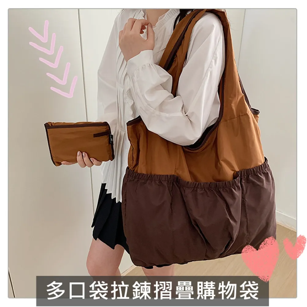 C110 多口袋摺疊拉鍊購物袋 | 尼龍多功能肩背包