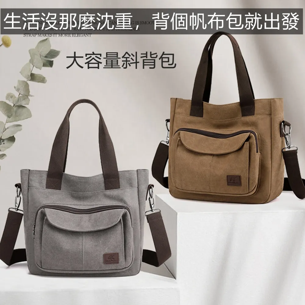 雨朵K008 復古帆布托特包.手提斜背兩用包
