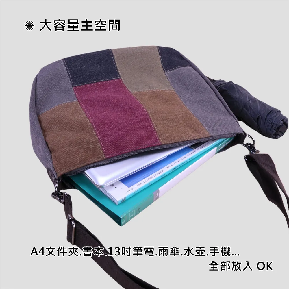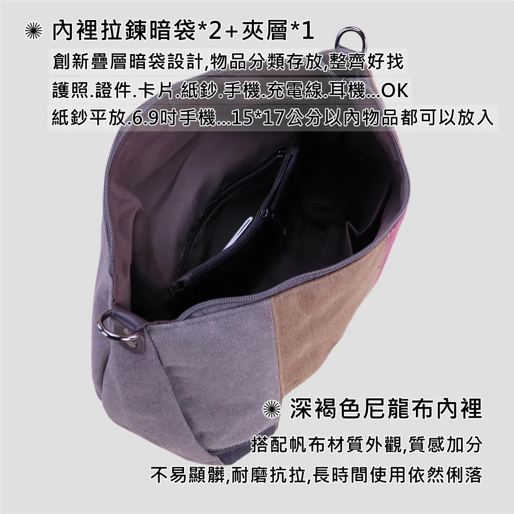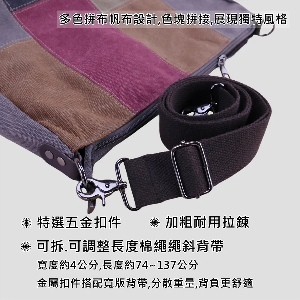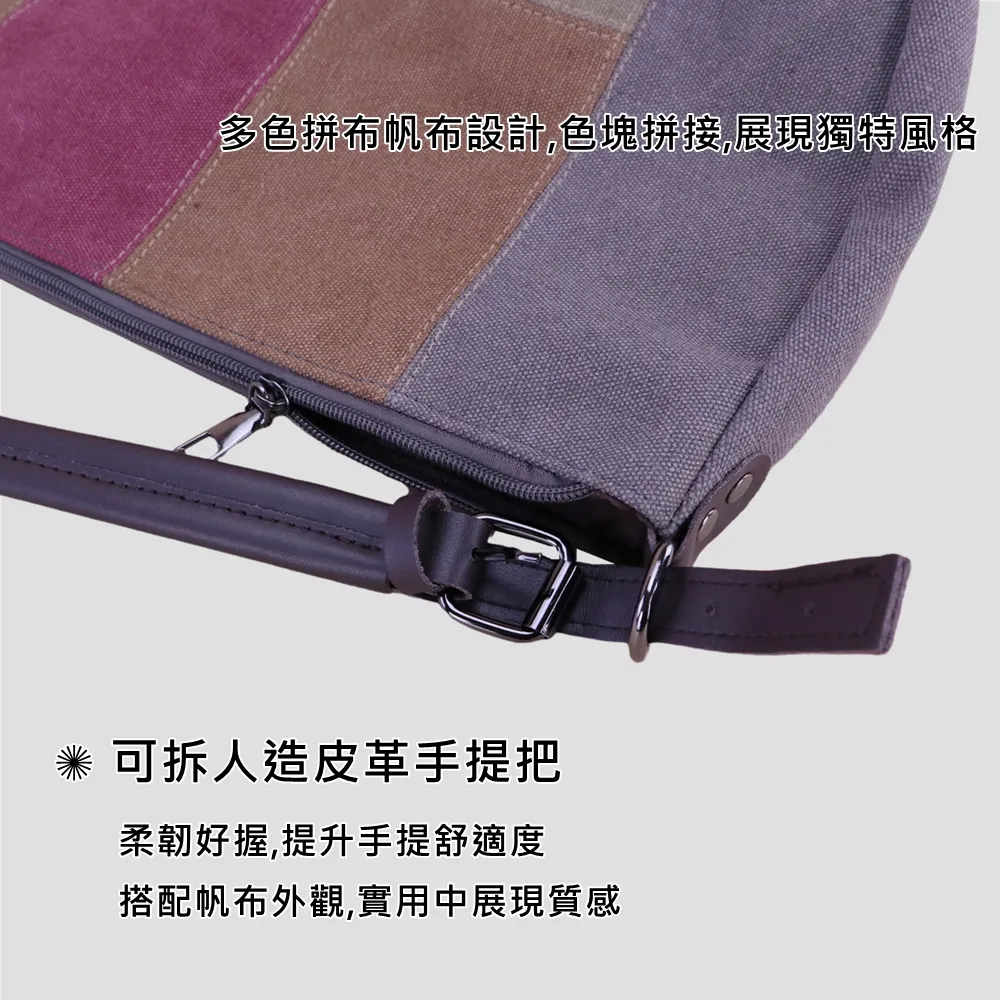 k014 拚色帆布皮革手提把手提包.大容量斜背包