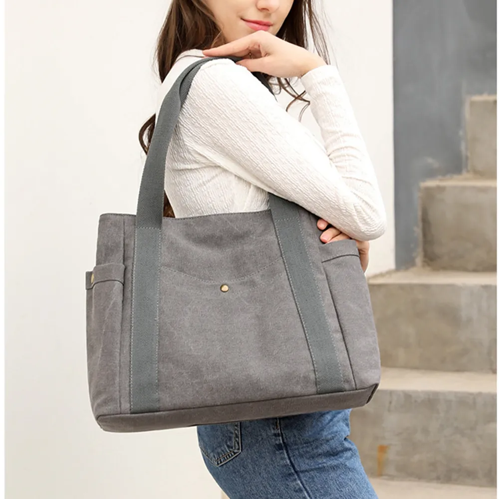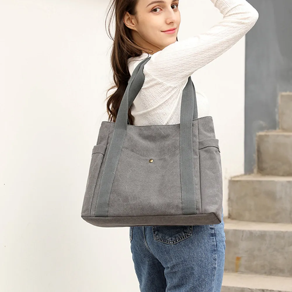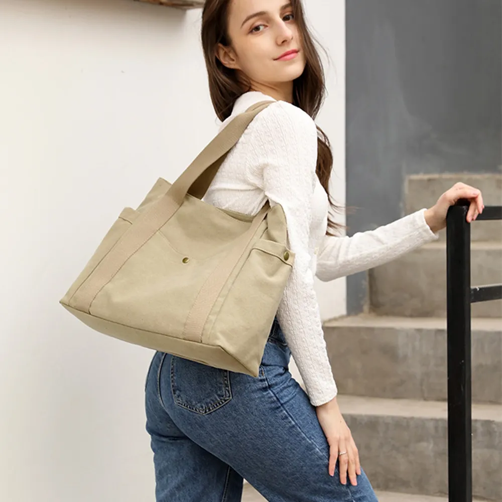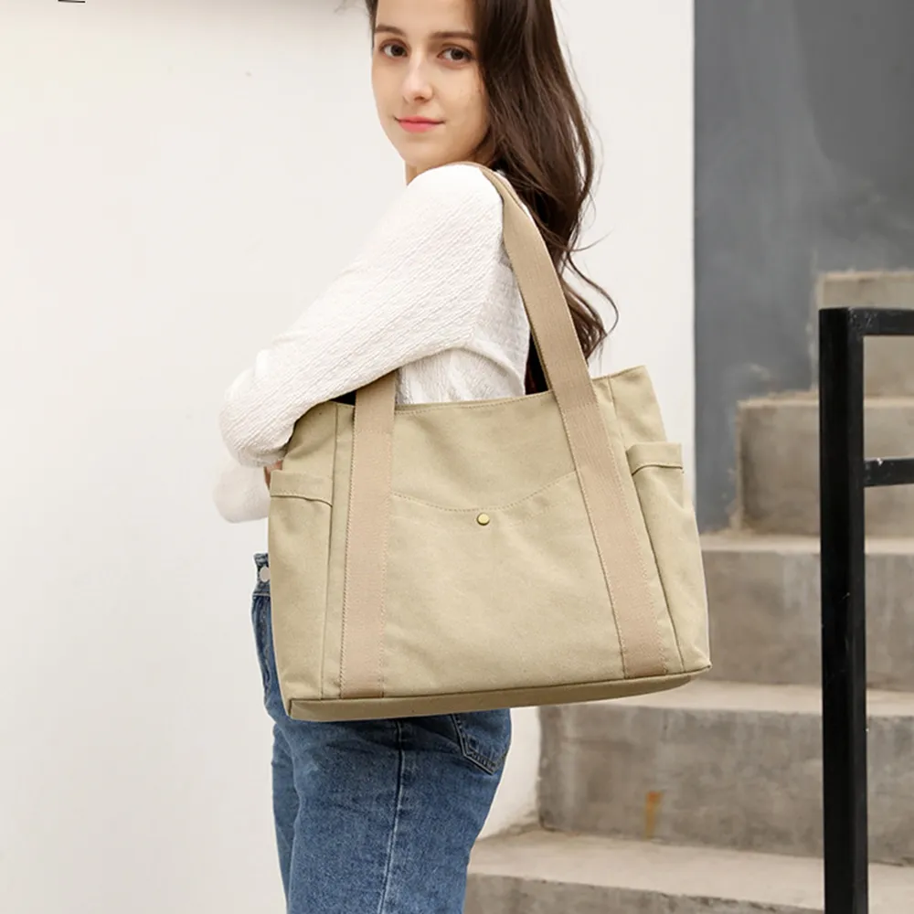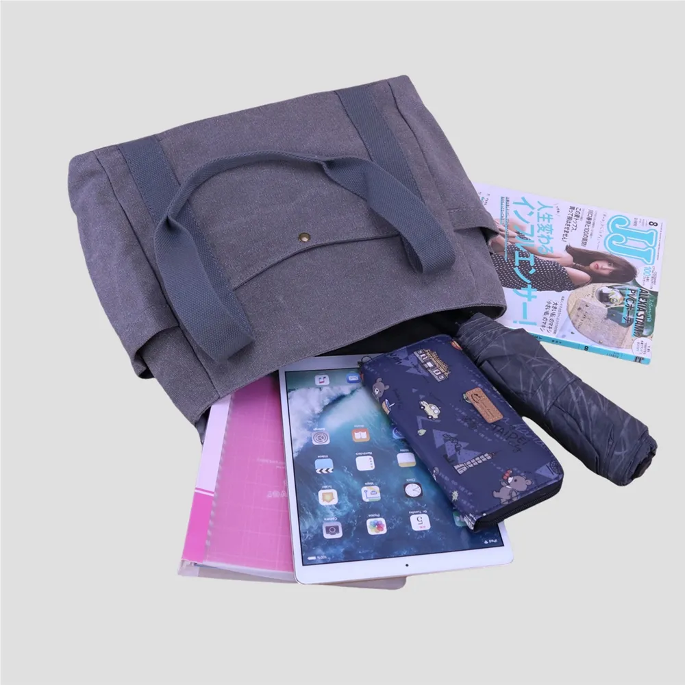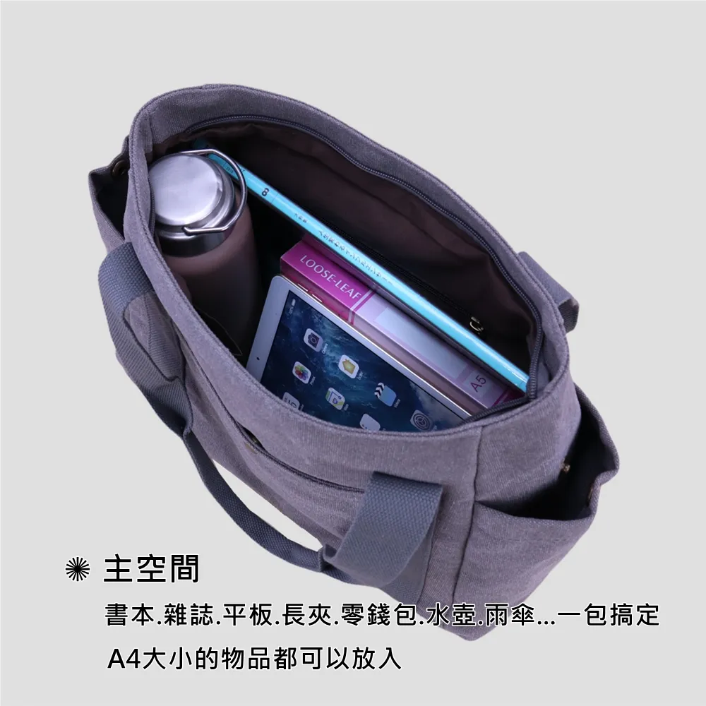 整體線條俐落、不顯厚重,是一款 實用與質感兼具的日常帆布包。