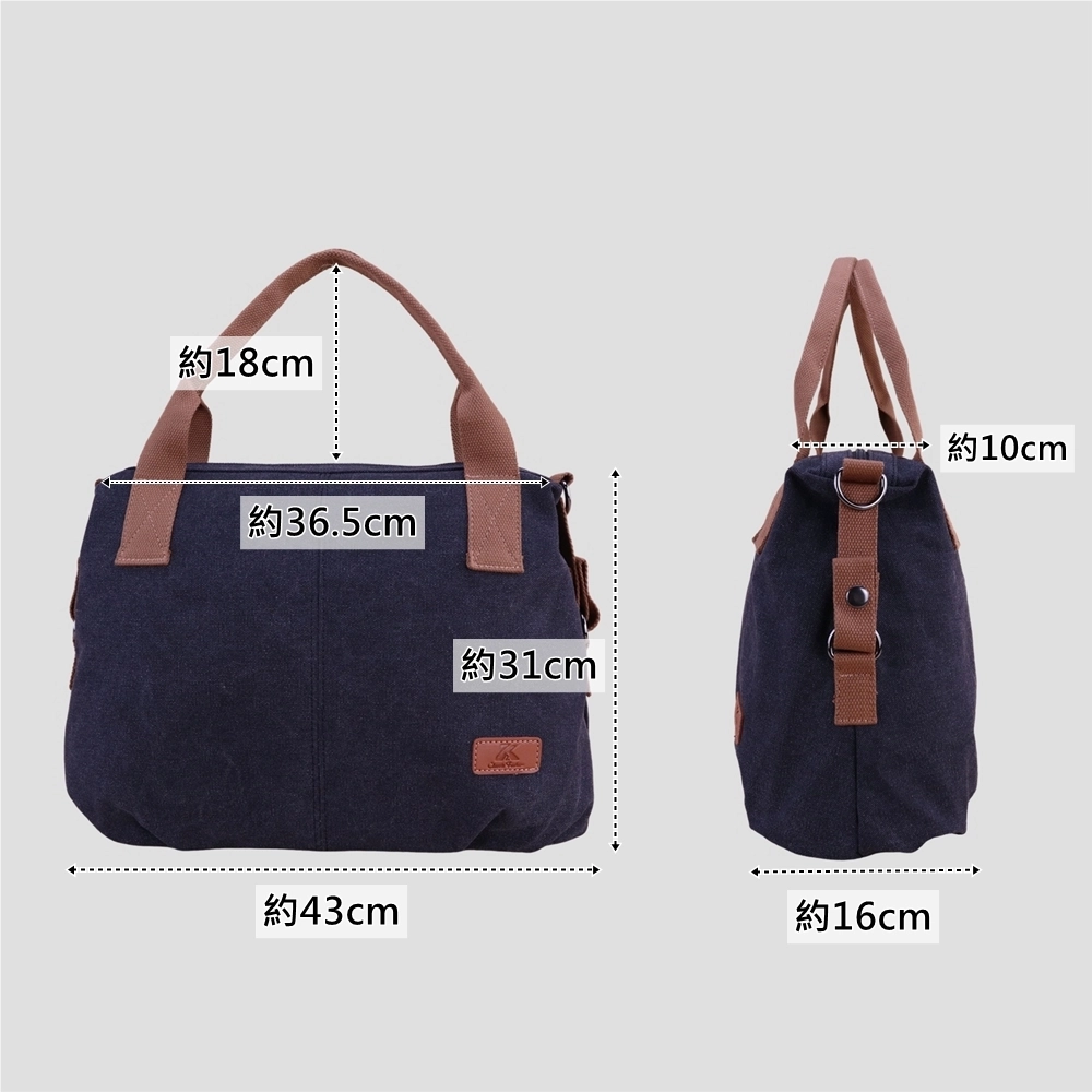 整體線條俐落、不顯厚重,是一款 實用與質感兼具的日常帆布包。