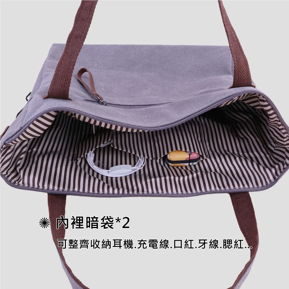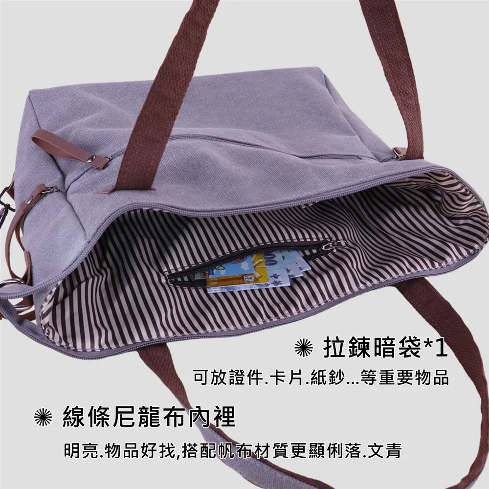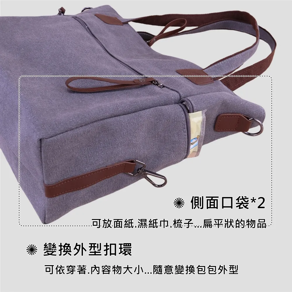 整體線條俐落、不顯厚重,是一款 實用與質感兼具的日常帆布包。