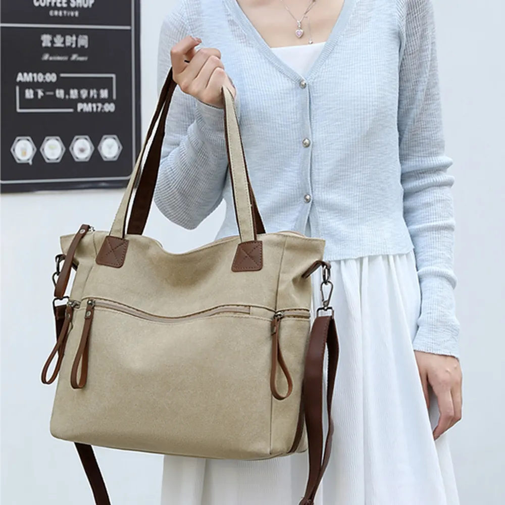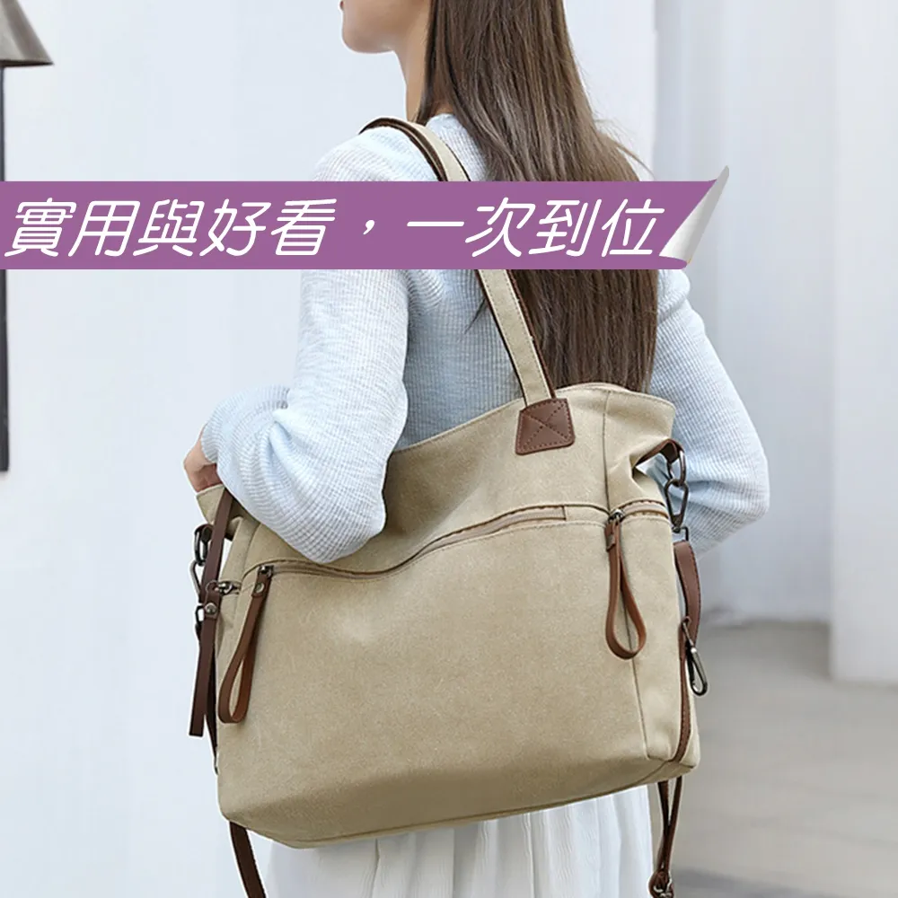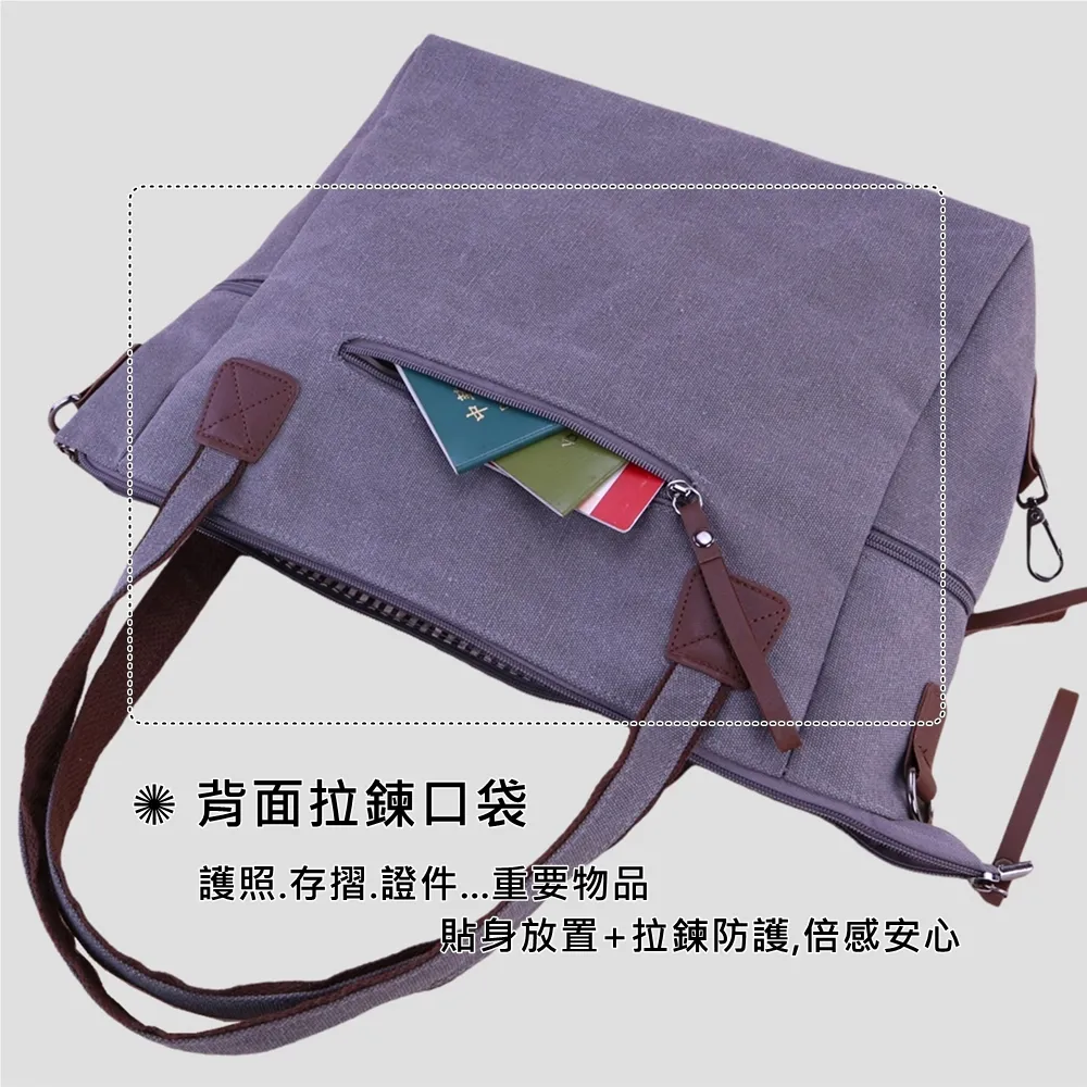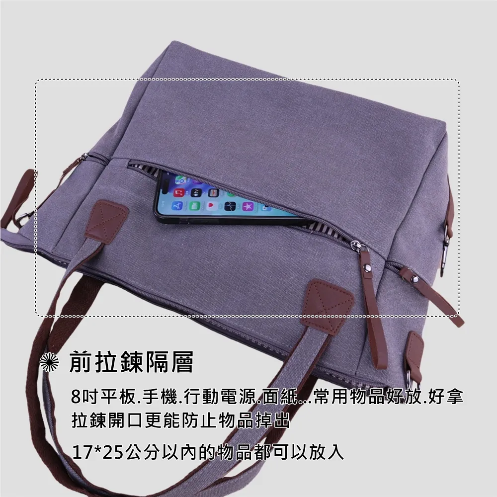 整體線條俐落、不顯厚重,是一款 實用與質感兼具的日常帆布包。