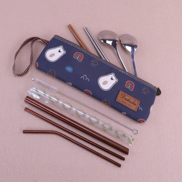 環保外出好夥伴!無內裡設計,材質輕巧耐用,水洗後速乾,不怕潮濕與異味。大容量設計可放入 5 副筷子+湯匙,適用長度 23 公分以內餐具。同時也是 吸管套,23 公分以內的環保吸管皆可收納。除了當餐具袋,還能當 盥洗用具收納袋,牙刷、牙膏、牙線輕鬆放入,一袋多用,外出、旅行都便利。