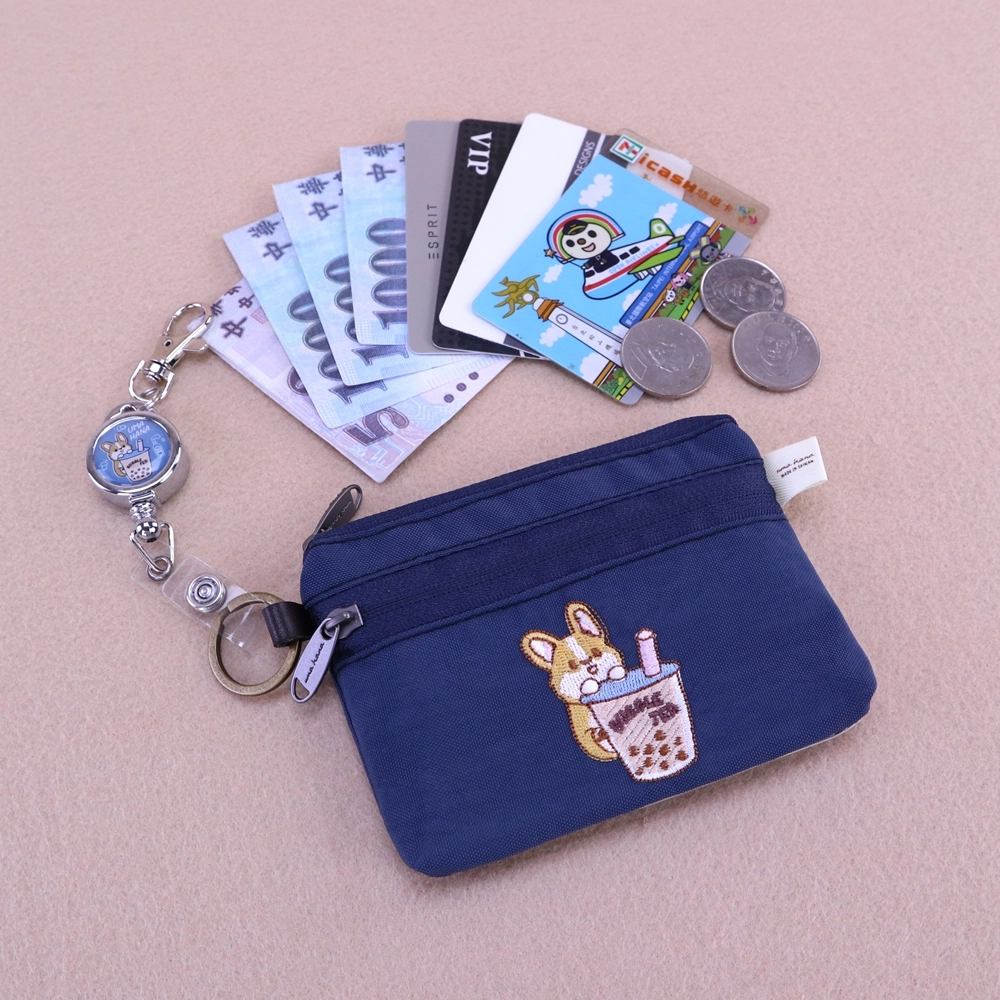 u554 輕量防潑水電繡悠遊小零錢包|多功能收納零錢/識別證/悠遊卡 附伸縮拉繩(附伸縮拉繩)