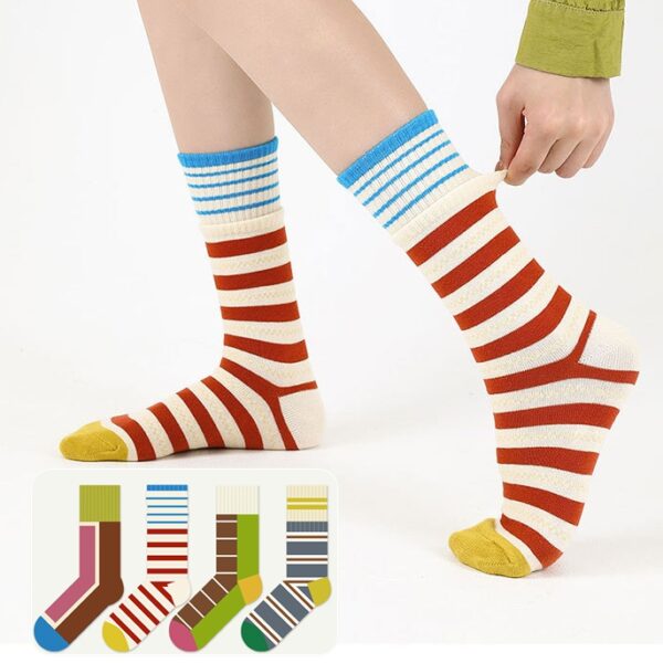 w0011 街頭潮流彩色條紋中筒襪.襪子