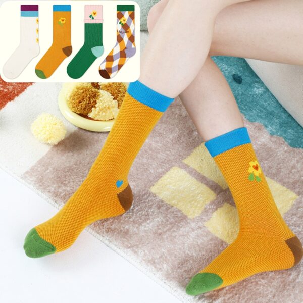 w0019 甜美花朵多採拼接棉襪.中筒襪.襪子