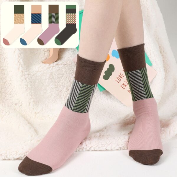 w0024 日系棕綠撞色防滑吸汗中筒襪.短襪.襪子