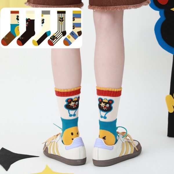 w0046 笑臉熊卡通中筒襪.襪子