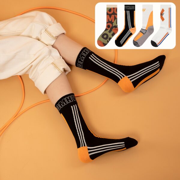 W0054 字母線條風精梳棉中筒襪.棉襪.襪子