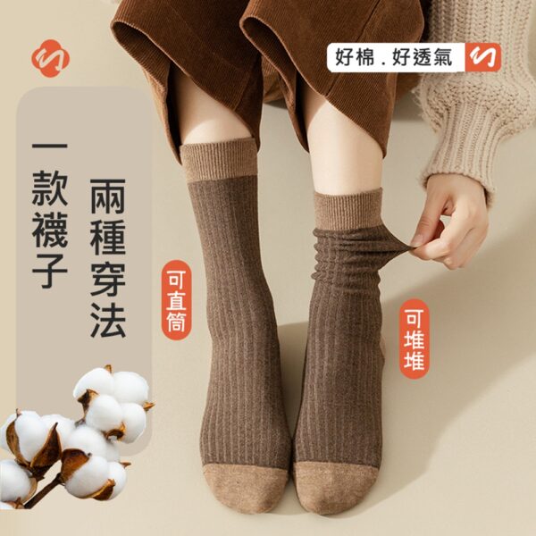 w0067 咖啡色復古加厚吸汗堆堆棉襪.長襪.襪子