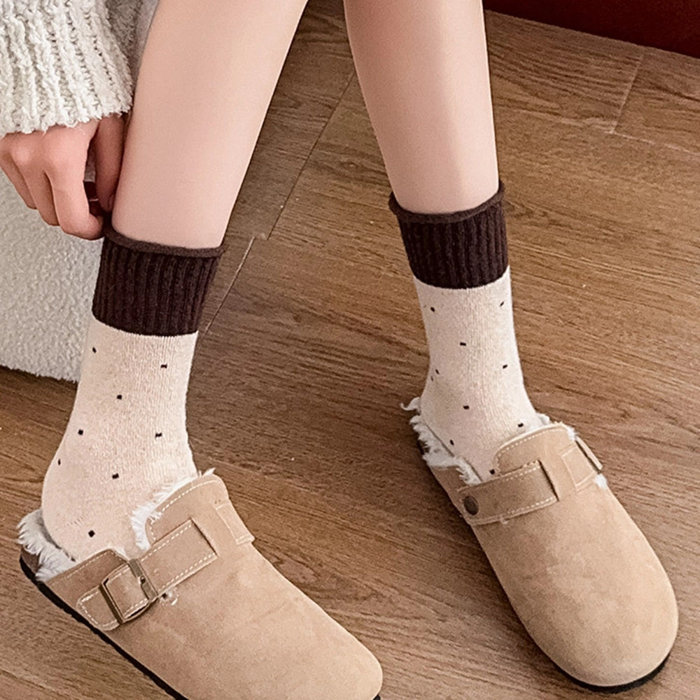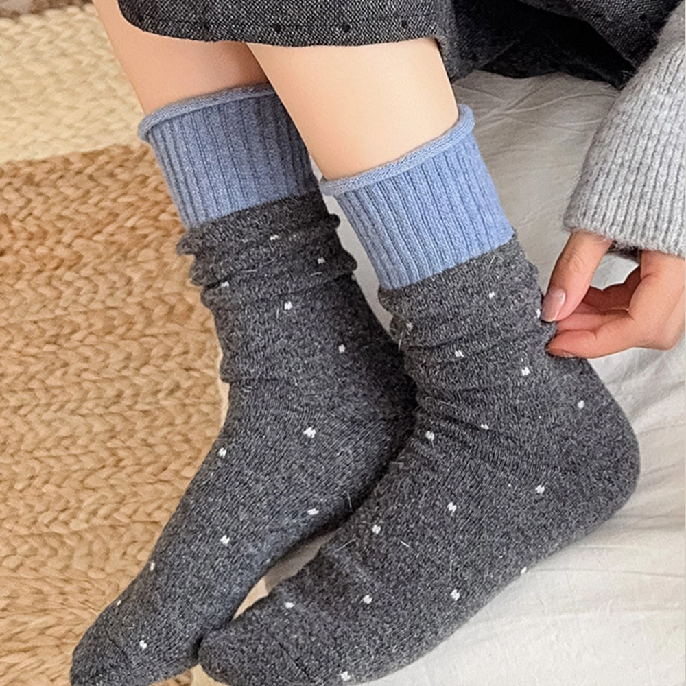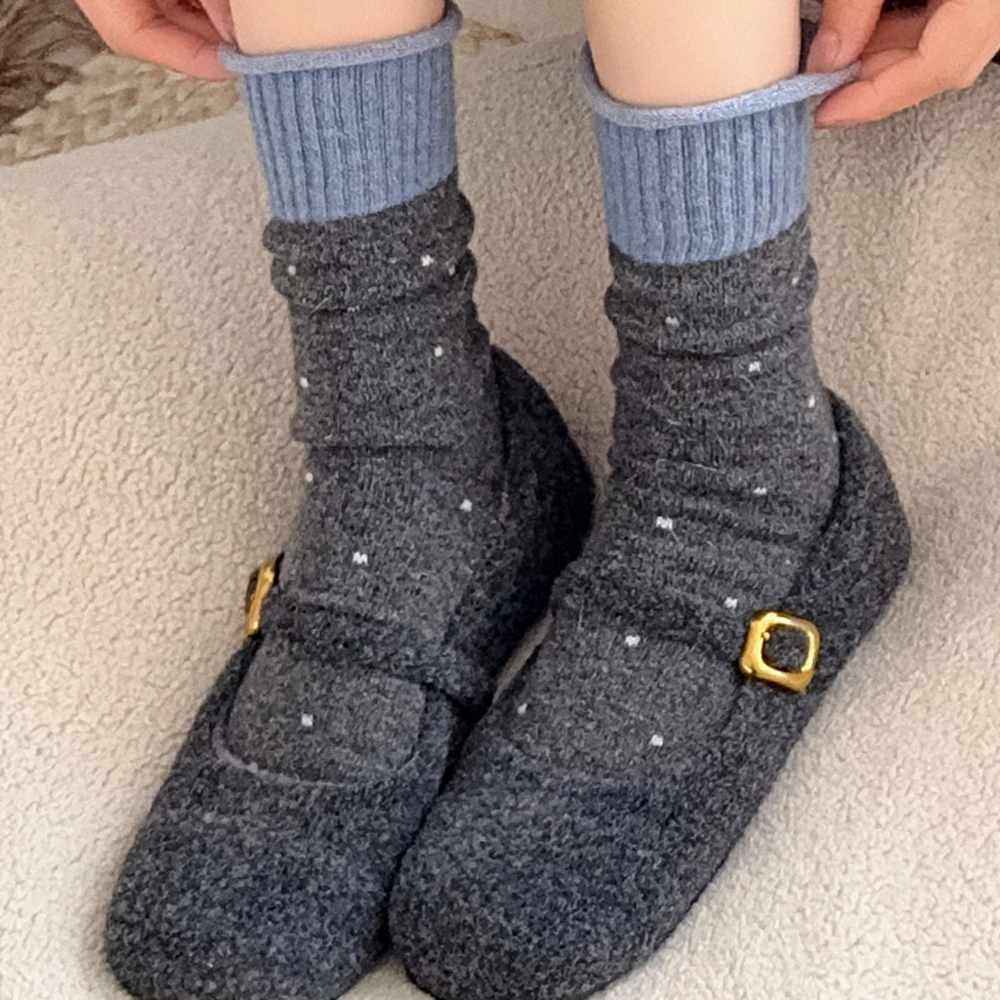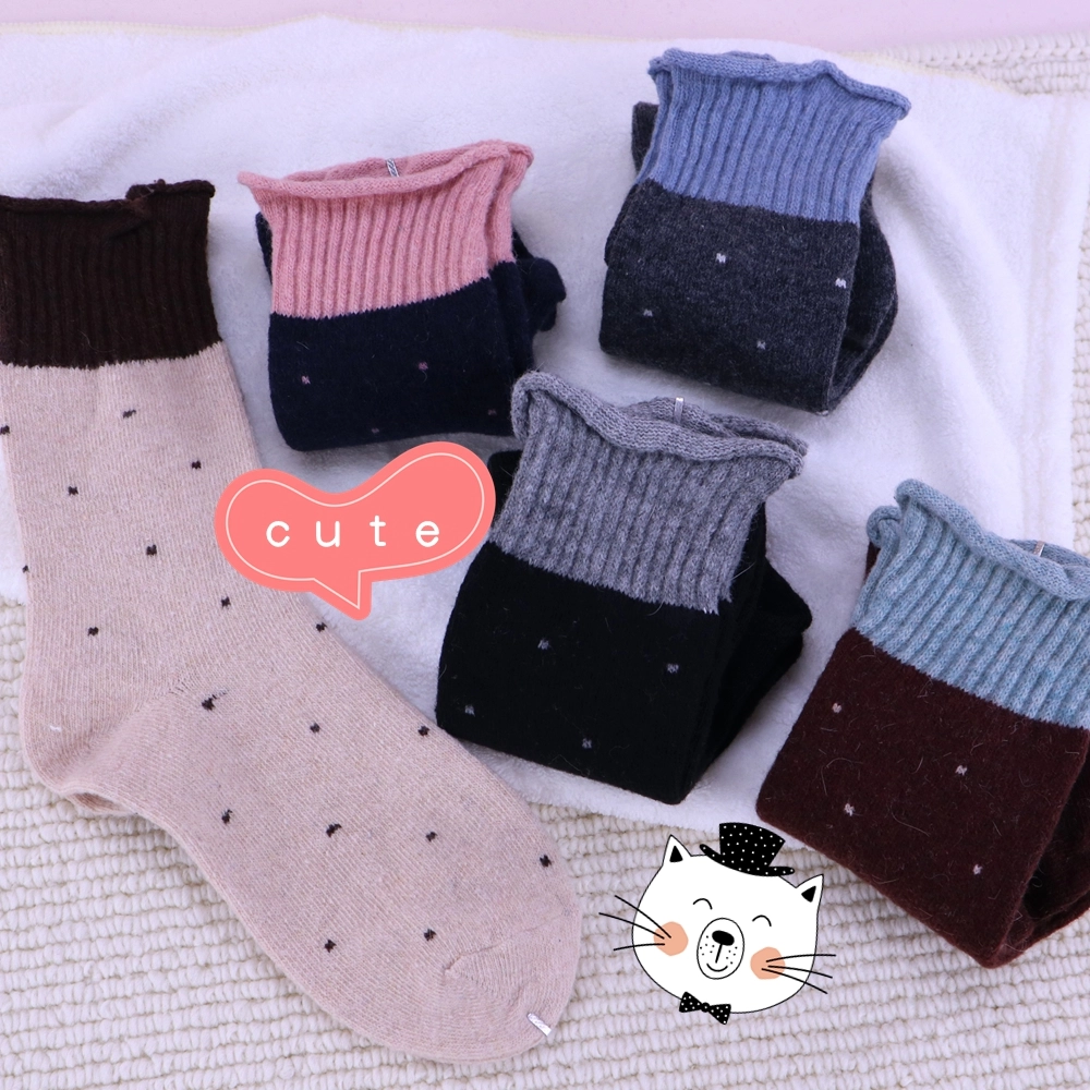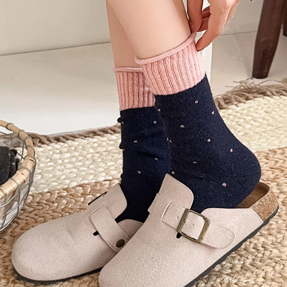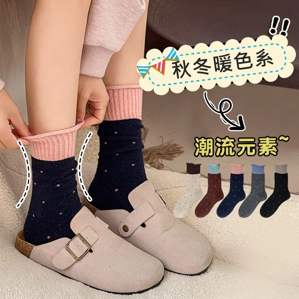 w0070 撞色波點加厚秋冬羊毛襪.堆堆中筒襪